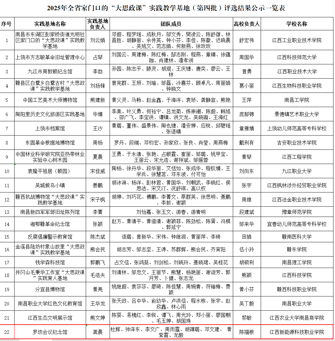 根據(jù)江西省教育廳官網(wǎng)公布的消息,根據(jù)《關(guān)于開(kāi)展全省“大思政課”建設(shè)綜合改革試驗(yàn)區(qū)改革項(xiàng)目申報(bào)的通知》工作安排,經(jīng)高校推薦、省教育廳初核、專(zhuān)家評(píng)審,由我校申報(bào)的新余市羅坊紀(jì)念館被確定為全省第四批家門(mén)口的“大思政課...
